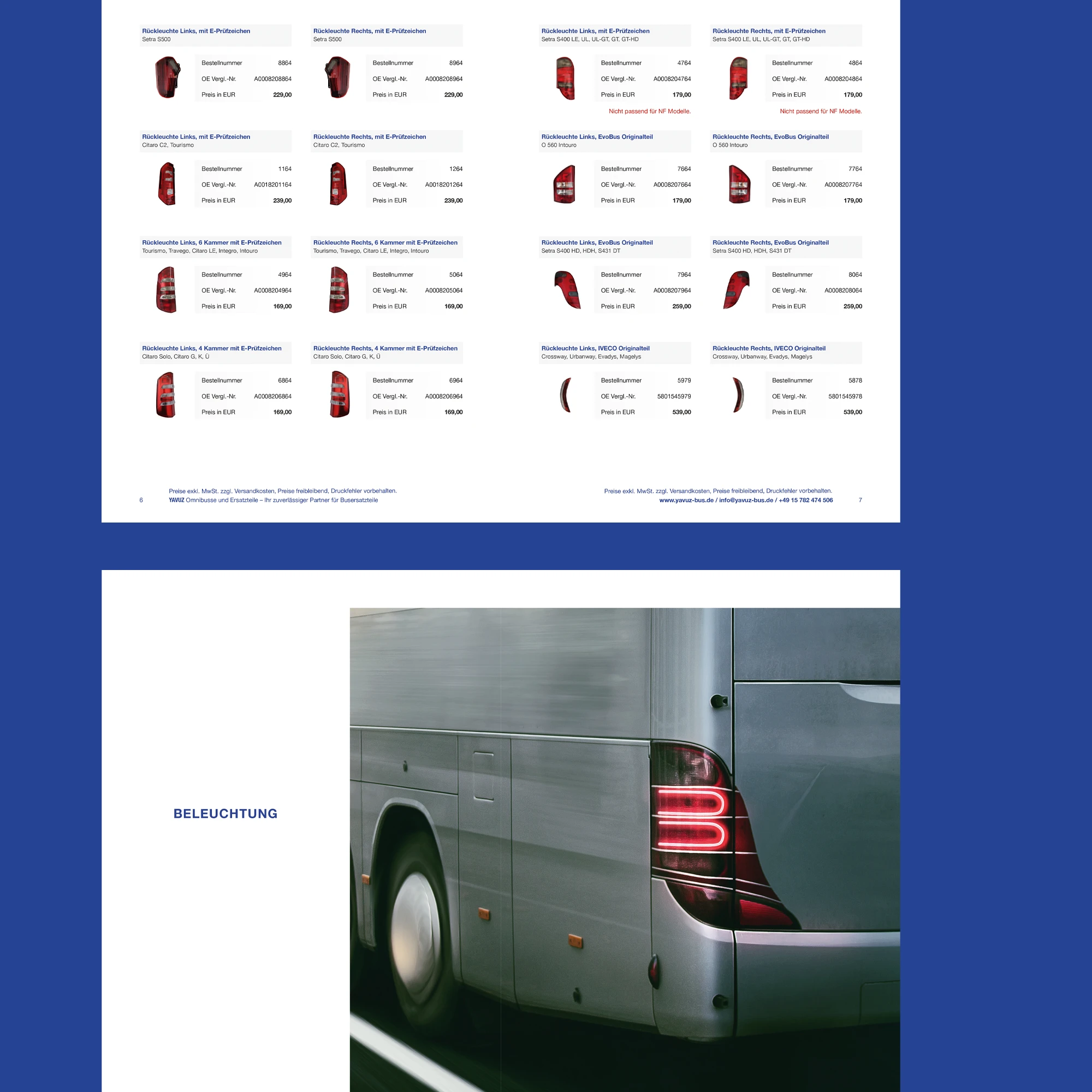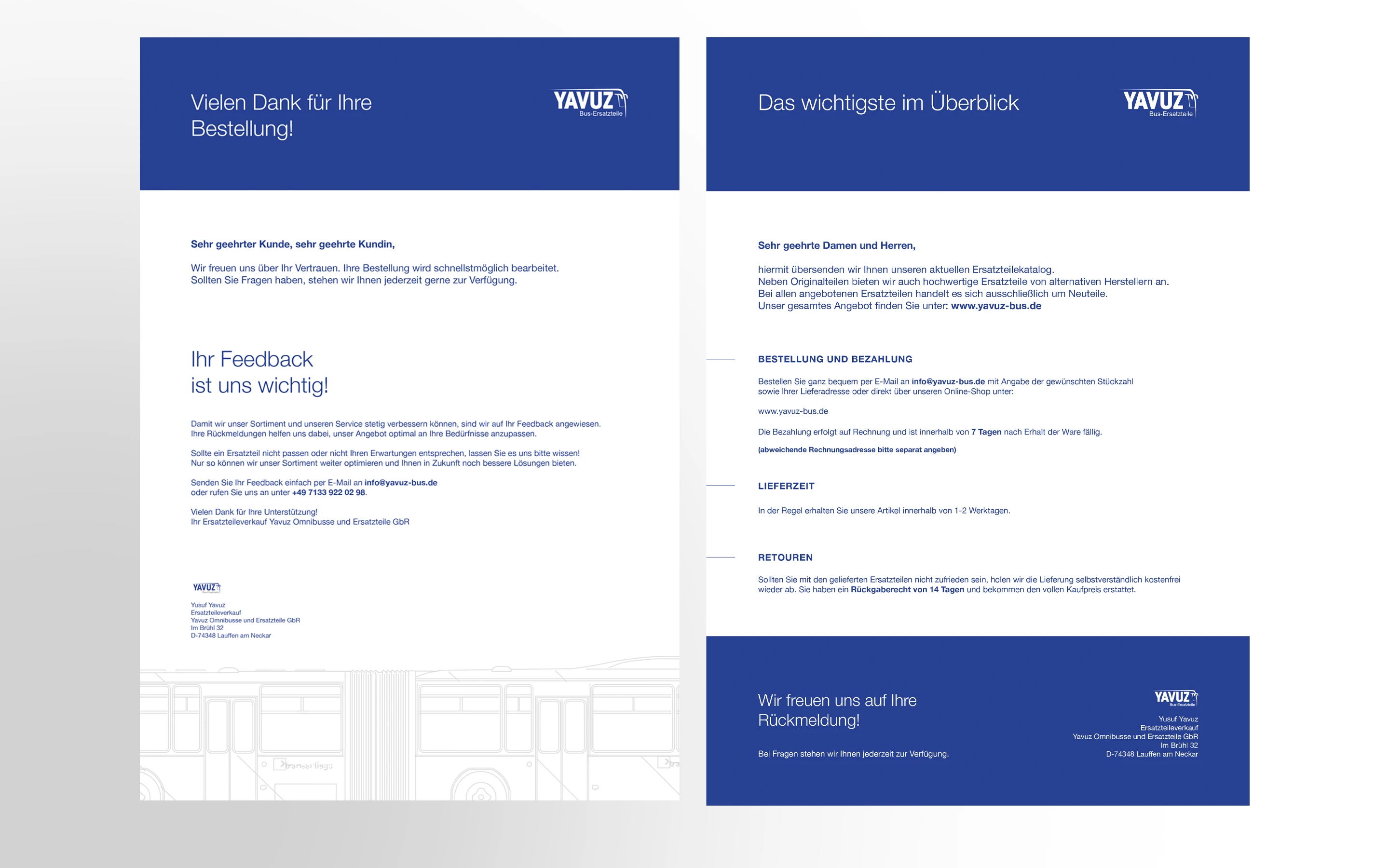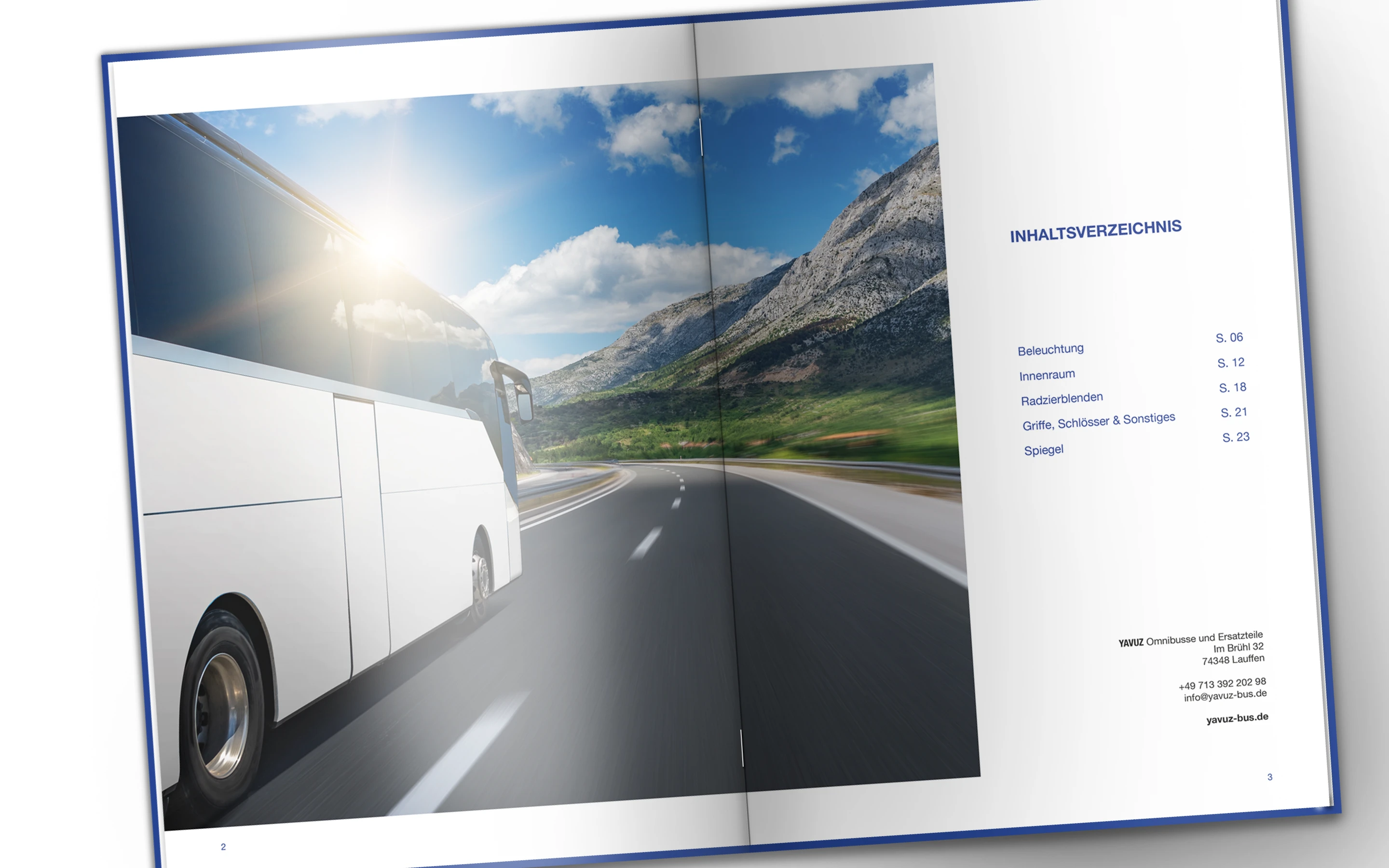Für Yavuz Omnibusse und Ersatzteile habe ich einen mehrseitigen Produktkatalog sowie ergänzende Informationsmaterialien entwickelt, die das Sortiment klar strukturieren und den Bestellprozess für Werkstätten und Geschäftskunden vereinfachen.